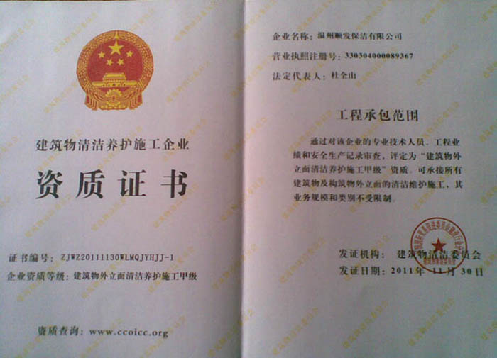 上一證書:會員證書   下一證書:石材養護施工資質證書 >>返回